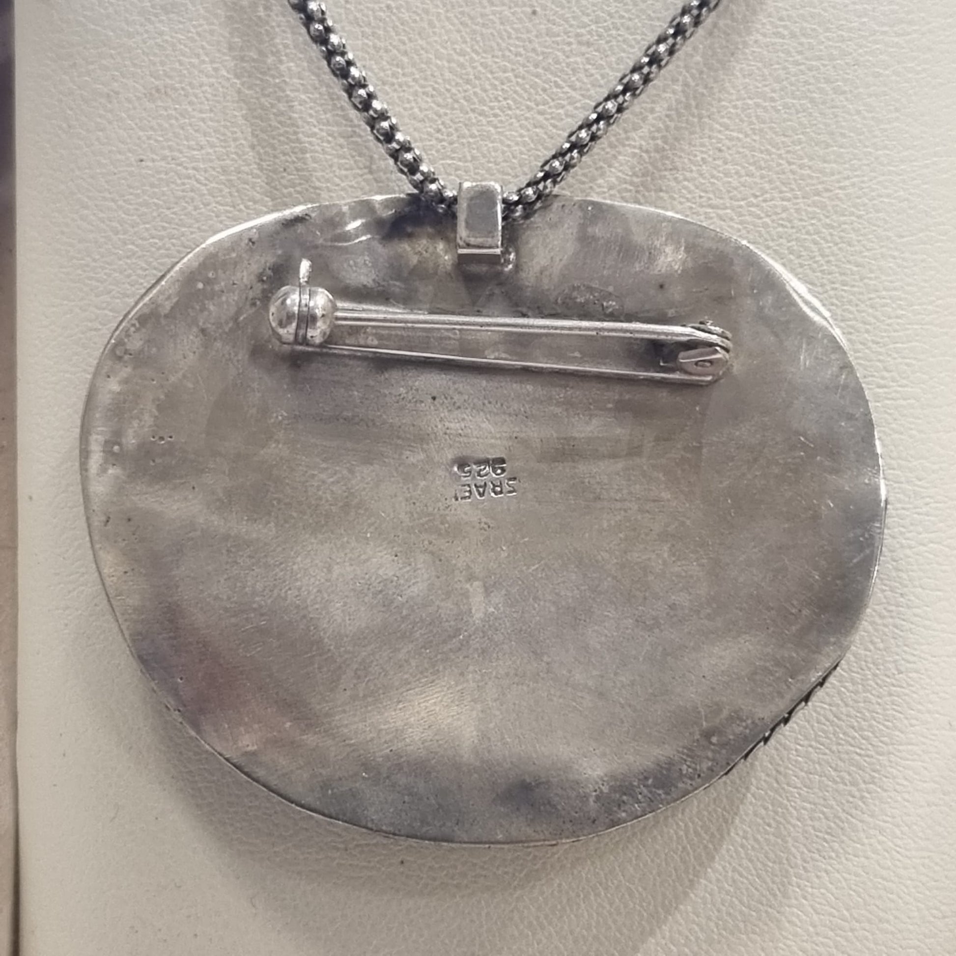 Roman Glass Pendant-Brooch in Sterling Silver 925 III